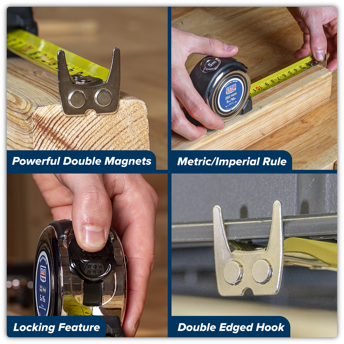 9.58 2026-04-04Manufactured using durable rubberised or chrome bodies with cushioned grips. Fitted with 25mm wide nylon coated blade maximizing strength. Metric/Imperial rule with 16" and 19.2" stud centre marking for framing work. Class II accuracy. Features double edged end hook designed to grab on top or bottom for versatility. Features powerful double magnets, lanyard and belt clip.