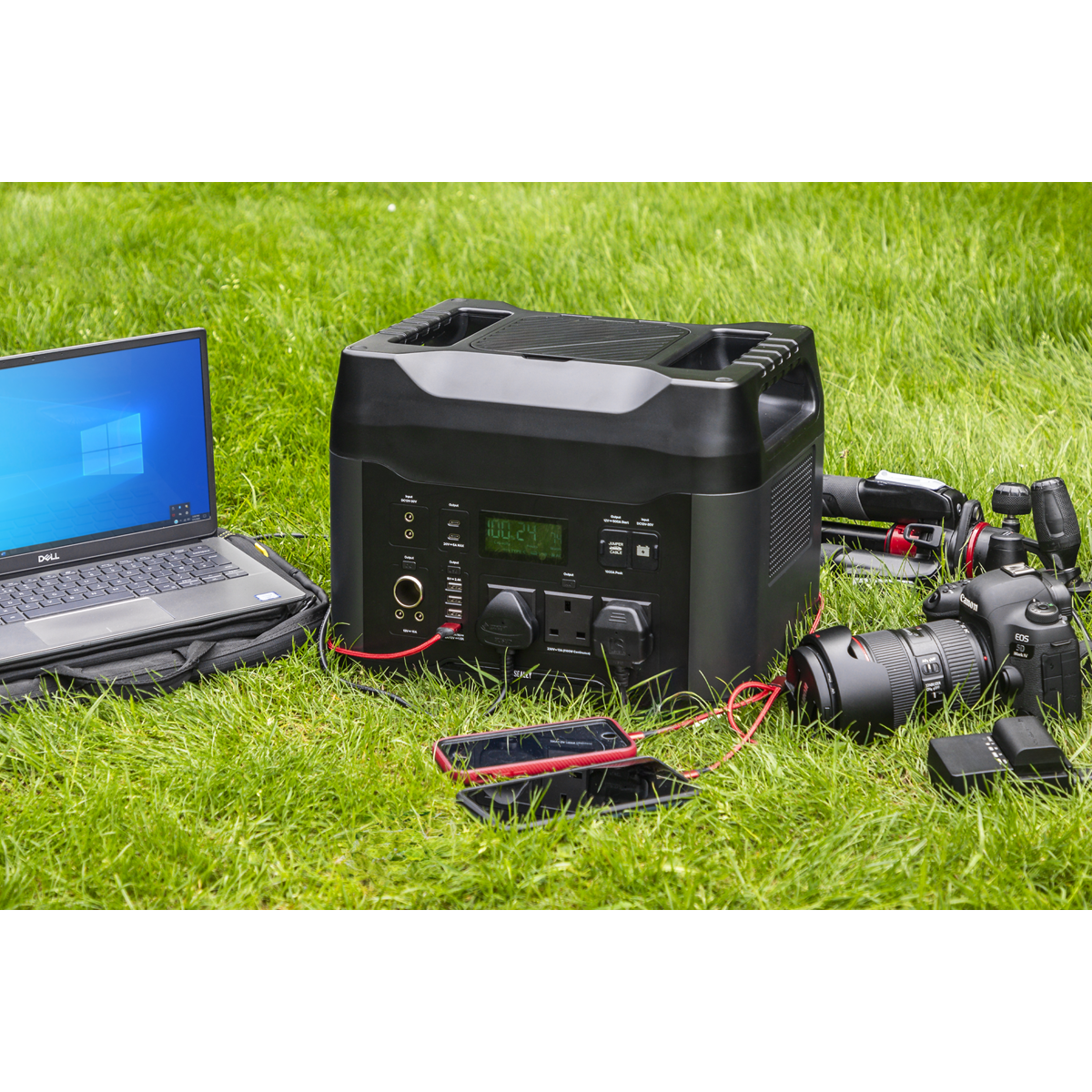 935.95 2025-11-02LiFePO4 batteries with a 6X longer lifespan. The power station is capable of charging an average phone battery over 100 times or supplying power to a car fridge for 12hrs (based on a 60W continuous draw). 12 Different outlets mean you are able to connect up to 12 devices at once. Integral light with five different modes: High, medium, low, flashing and SOS. Supplied with smart jump cables so the power station can be used to jump start a 12V vehicle. There are eight forms of built-in protection including: Over-charge, short-circuit, reverse polarity, temperature protection and more. Includes battery link cable which allows you to expand the unit’s capacity with additional power stations. Audible alarm will sound at 10% battery power to help make sure you never run out of battery. From a completely flat battery the power station will charge to full in 8hrs. Supplied with power lead. Built-in handles for easy transportation.