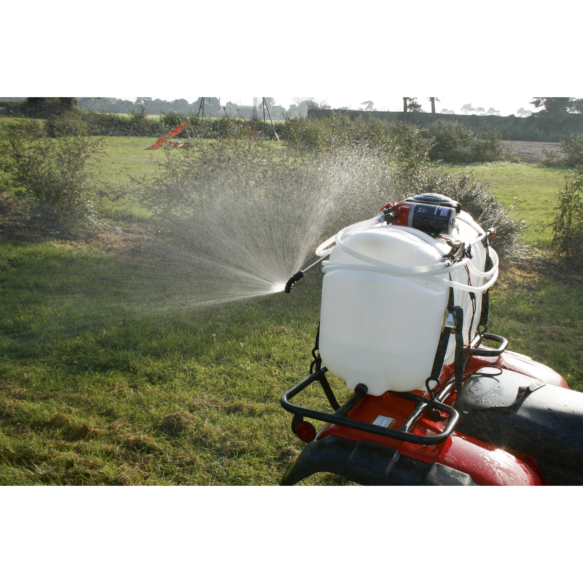 304.76 2026-03-29ATV Spot sprayer supplied with tie down straps to attach to most all terrain vehicles. Powered by 12V battery or connected via 12V supply on-vehicle. Quiet running diaphragm pump is pressure activated producing a smooth flow from the tank. Supplied with trigger operated lance providing controlled application and broadcast lance for hands-free operation. Features remote operated on/off switch and battery clips. Tank is manufactured using chemical resistant material and is fitted with tank drainage spout for draining unwanted contents. Tank also features extra-thick walls and is UV-stabilized to prevent fading. Suitable for use with a variety of different agents including weedkiller, de-icer and for spraying fertilizer.