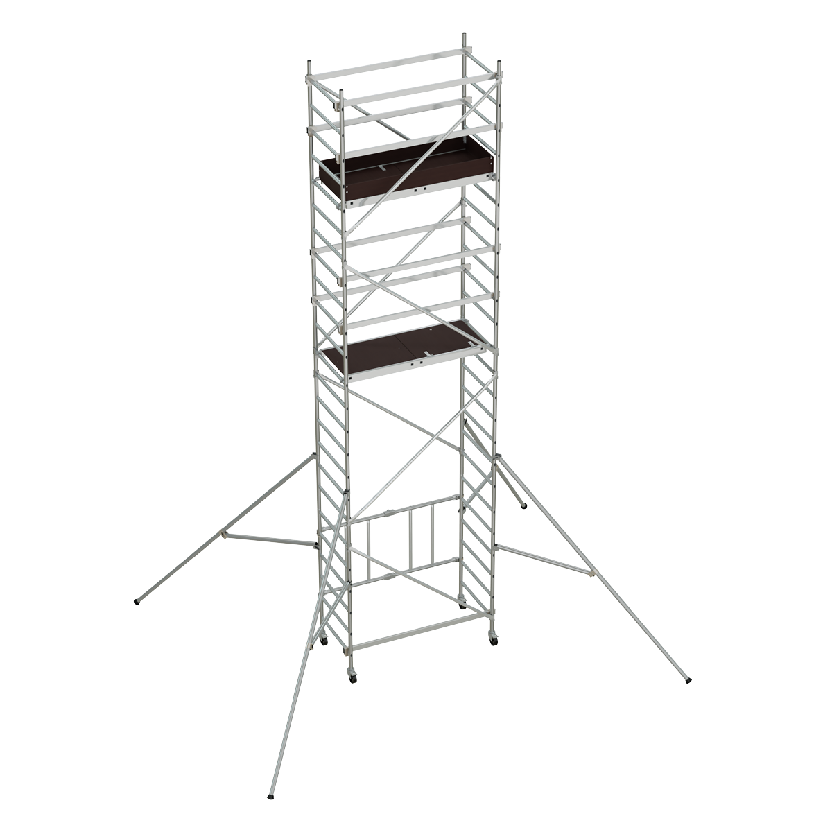 1949.95 2026-02-24EN 1004-1 Approved Scaffold Tower System designed to meet the UK PASMA 3T standards. Robust aluminium frame unit with durable corrosion resistance. Heavy-duty platform with trap door for safe access to platform. SSCL1 is the starter kit with a base working height 3.6m. For working heights of 5.35m and 7.1m please see SSCL3 and SSCL4 extension packs. Unique design enables the unit to be quickly and easily folded down without tools for transportation or storage. 830mm Depth means unit will pass through most doorways even when partly erected. Handrails for comfort and safety. Four large Ø125mm castors for easy mobility.