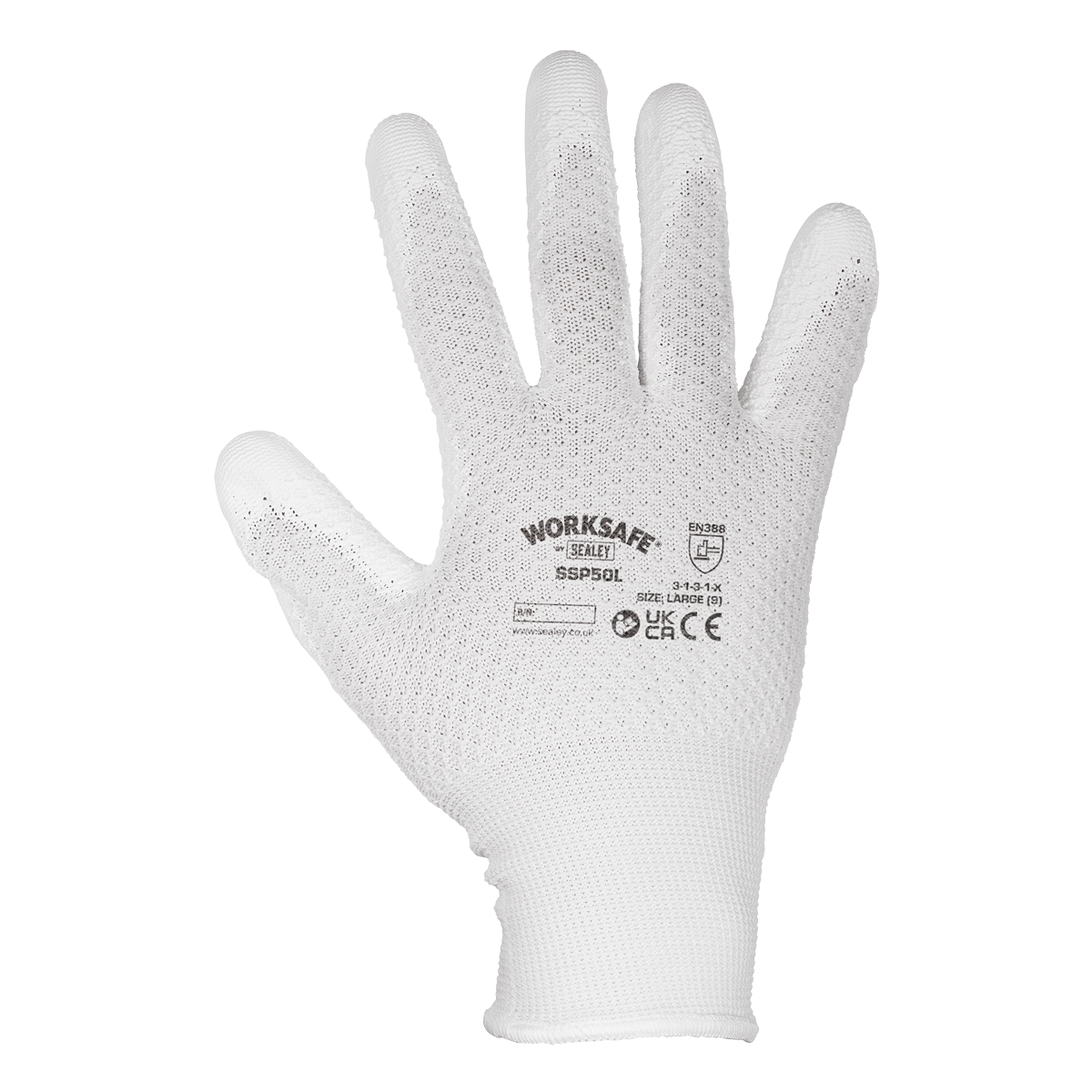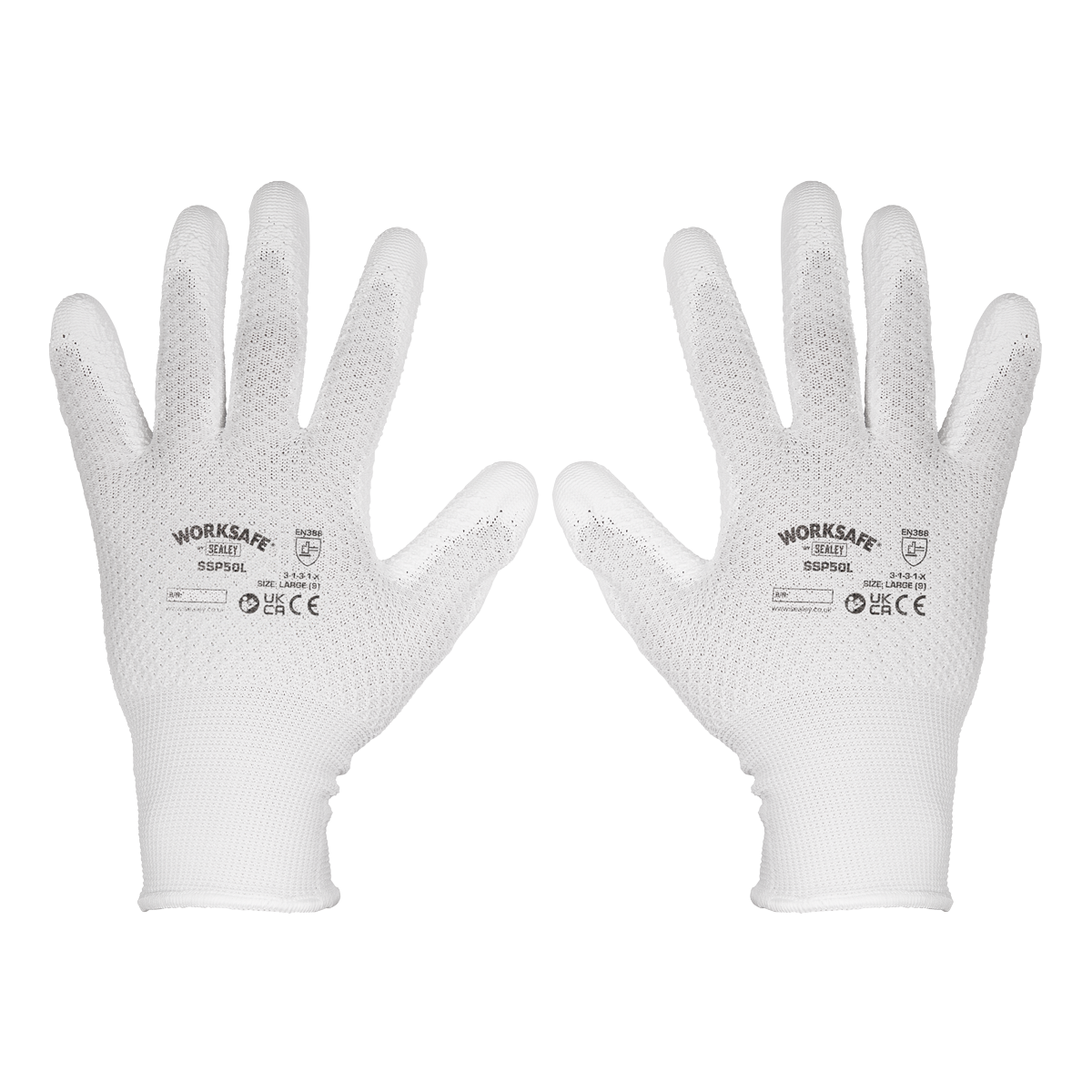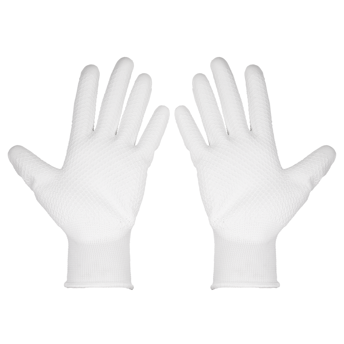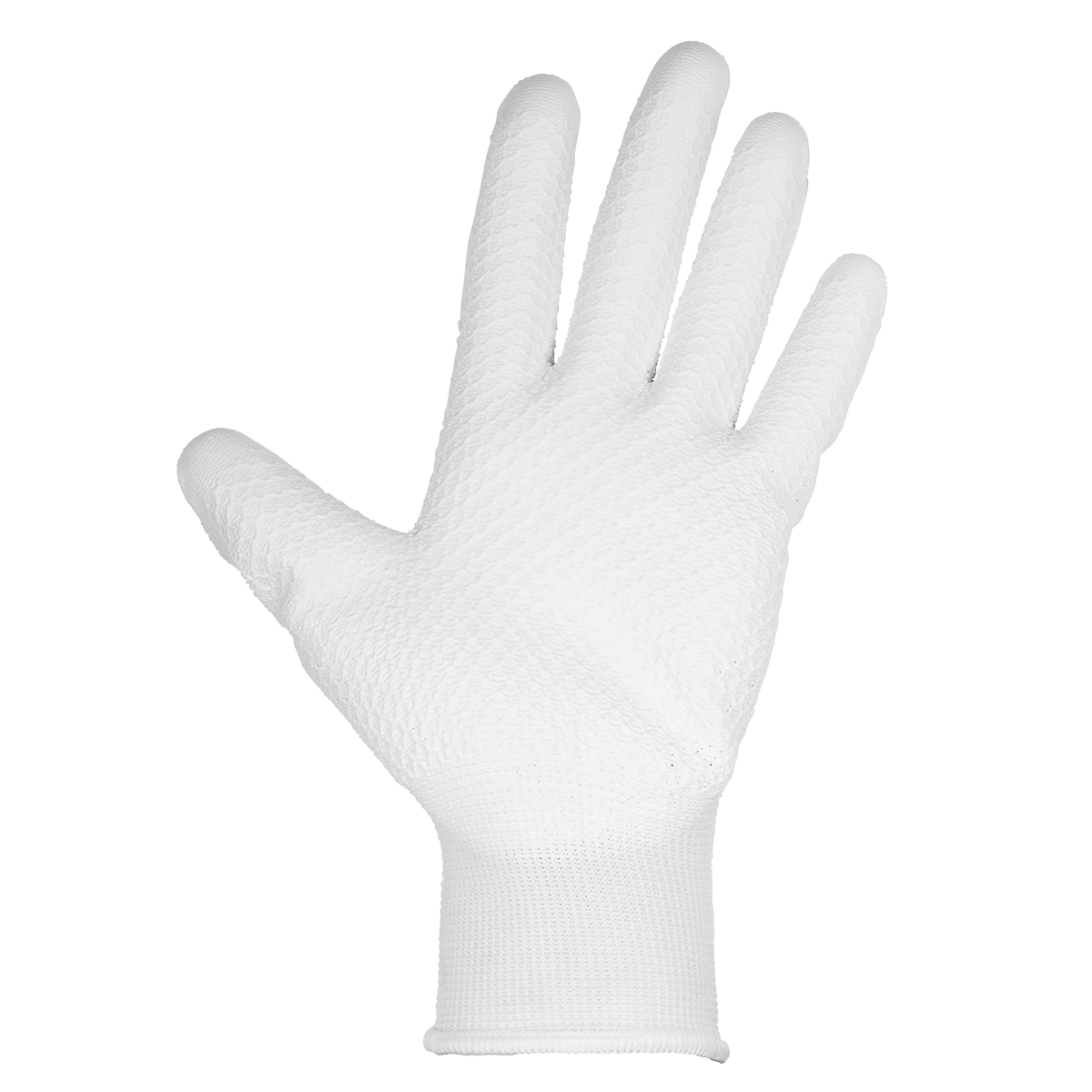 6.34 2025-11-01White diamond effect precision grip gloves, for work in clean environments. Diamond effect on the gloves adds greater grip when working with delicate items whilst maintaining flexibility and comfort. Conforms to EN388:2016 + A1:2018 performance levels 3-1-3-1-X. Size 9.