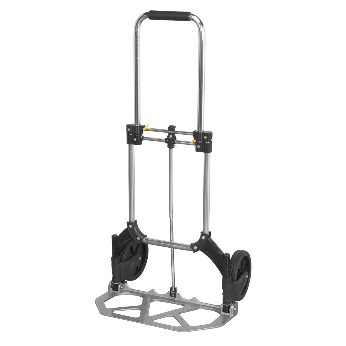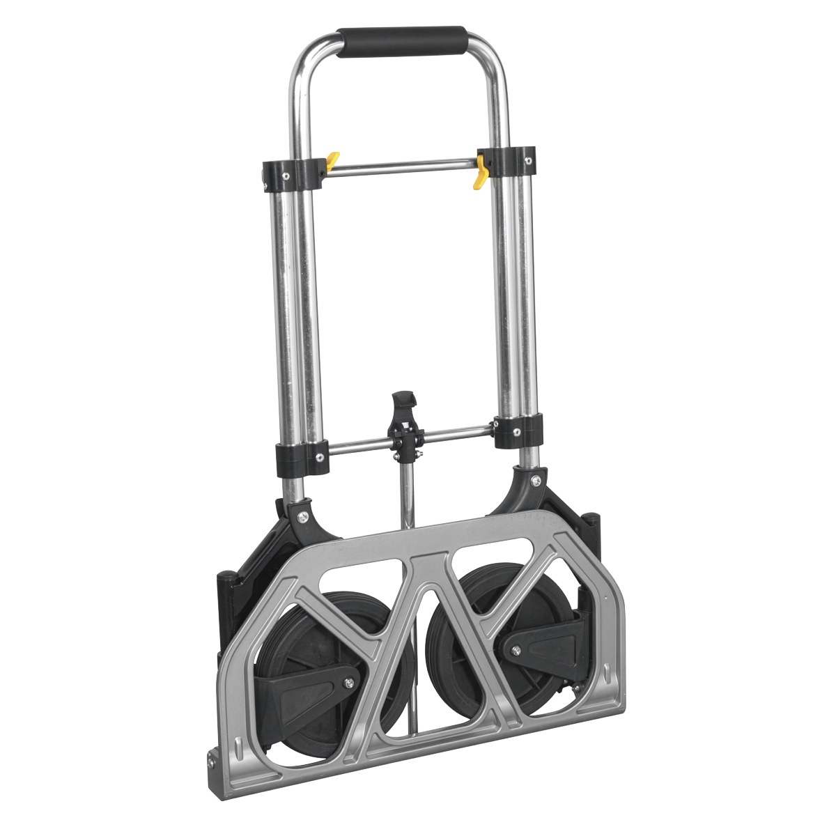 52.76 2025-12-22Lightweight aluminium and composite construction, weighs just 3.8kg. Fitted with heavy duty solid rubber tyres, which cannot be punctured by sharp objects. Wheels are also resistant to most oils, grease and many common chemicals, perfect for work on building site. Folds down for easy storage and transport, yet unfolds in seconds, carrying up to 70kg. Rubber grip handle for added comfort and control.