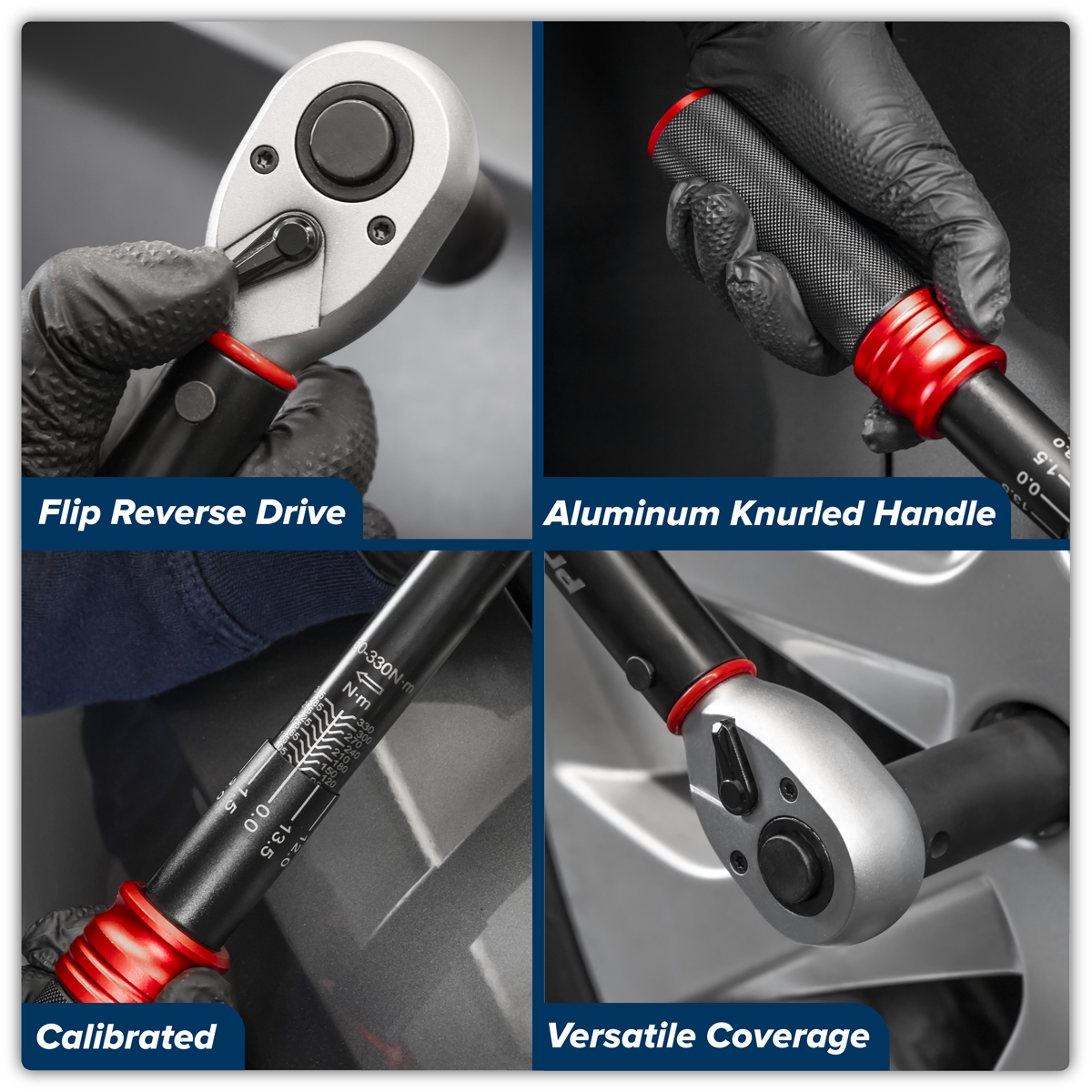 86.98 2026-05-26Flip reverse Chrome Vanadium steel ratchet head with a smooth action mechanism. Scale graduated in Nm and lb.ft. Calibration tolerance in accordance with BS EN ISO 6789-1:2017. Wrenches are individually tested to standards with ±4% accuracy and each wrench is issued with an individually numbered test certificate. Aluminium knurled handle for comfort and control. Supplied in an EVA foam storage tray.