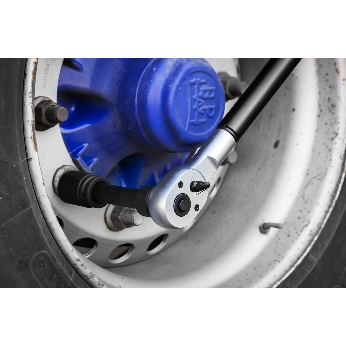 377.96 2026-05-26Flip reverse Chrome Vanadium steel ratchet head with a smooth action mechanism. Scale graduated in Nm and lb.ft. Calibration tolerance in accordance with BS EN ISO 6789-1:2017. Wrenches are individually tested to standards with ±4% accuracy and each wrench is issued with an individually numbered test certificate. Aluminium knurled handle for comfort and control. Supplied in storage case.
