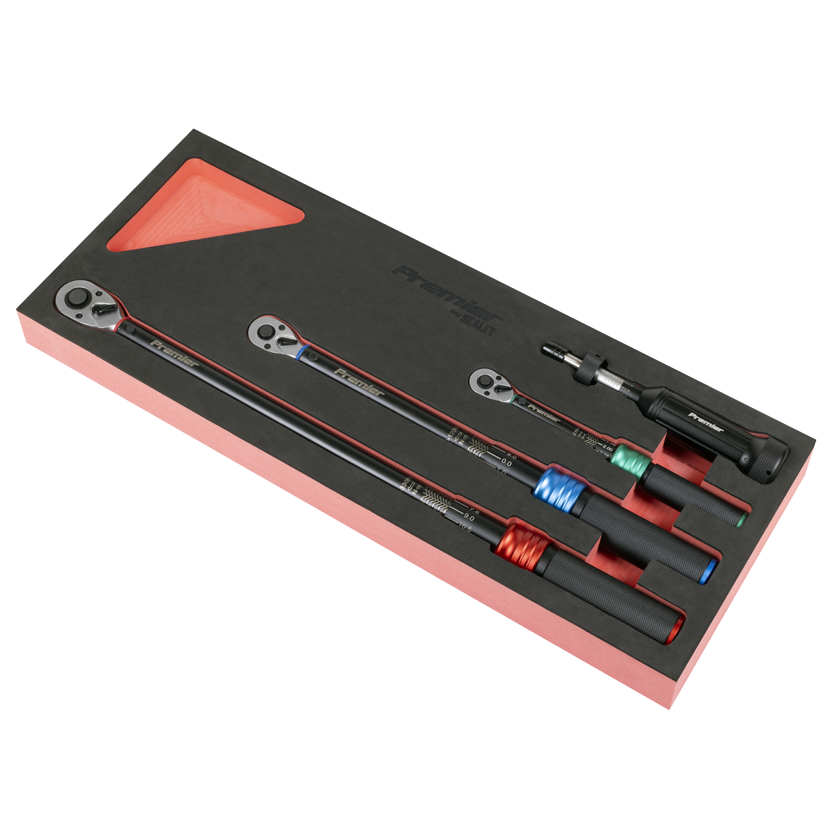 182.36 2026-03-26Flip reverse Chrome Vanadium steel ratchet heads with a smooth action mechanism. Scale graduated in Nm and lb.ft. Calibration tolerance in accordance with BS EN ISO 6789-1:2017. All individually tested to standards with ±4% accuracy and issued with an individually numbered test certificate. Aluminium knurled handles for comfort and control. Torque screwdriver with 1/4"Hex quick release bit holder. Tested to standard with ±6% accuracy, includes test certificate. Supplied in an EVA foam storage tray.