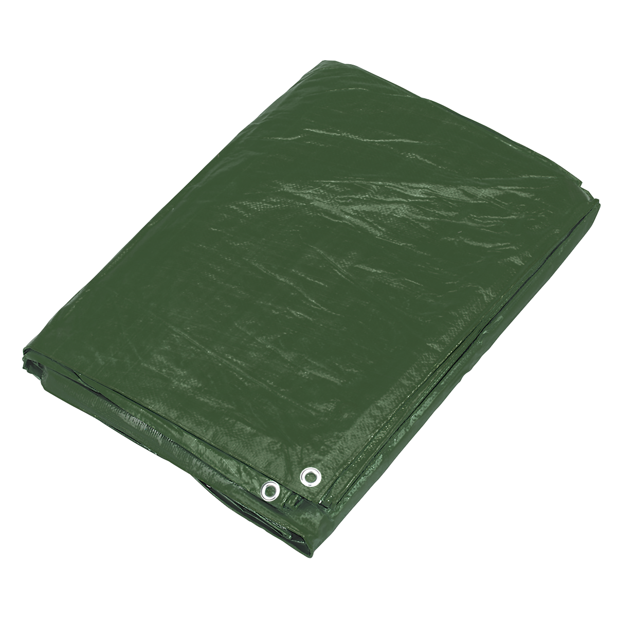 50.38 2026-04-08Manufactured from 130gsm polyethylene with heavy, 200 micron laminate. Tearproof, waterproof and treated with a UV filter to prolong life and durability. Mould and mildew proofed. Constructed with roped edges and metal grommets in all corners and every metre. Top quality green tarpaulins are suitable for farm, garden, bodyshop, garage, boatyard and leisure use. Note: Size is approximate.