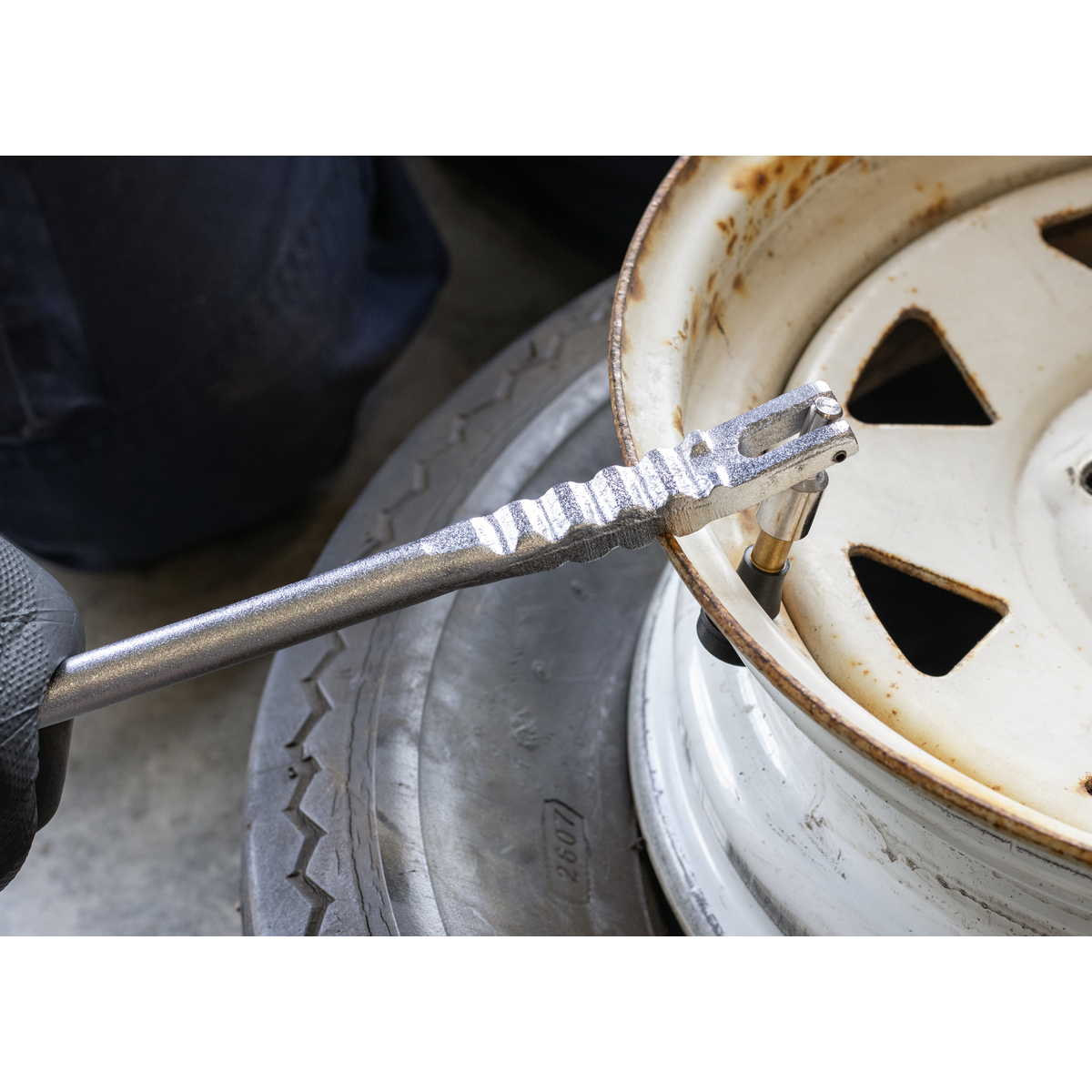 10.18 2026-01-18Simplifies installation of tyre valves in tubeless wheels. Pulls tyre valve assembly through rim. Shank is notched to accommodate various rim styles. Strong 270mm long handle with corrosion resistant plating.