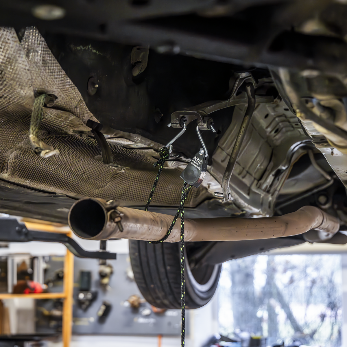11.36 2025-12-11Heavy-duty zinc S-shaped hooks. Rope length 2m. Rope thickness Ø1/4". Convenient thumb lever pulley ratchet system. For hanging parts such as calipers and exhausts without the need for removing components. Can also be used to tie down general items in the workshop and at home. Breaking strength 68kg.