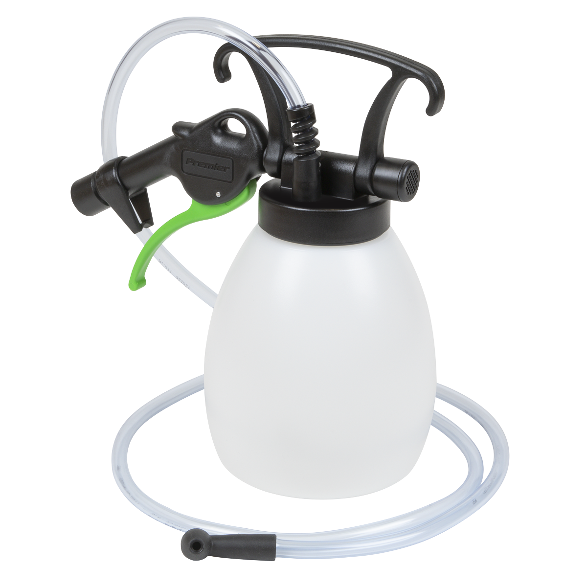 79.16 2026-01-03One-person operation using standard workshop air supply (87-174psi/6-12bar). With a flexible hanging hook. Durable hard-wearing Acetal plastic. Trigger for adjusting air pressure, with an added trigger lock. Draws fluid from the bleeding nipple enabling either bleeding or full replacement of fluid in the system. Clear PVC hose easily checks for air bubbles. Hose length 1.5m. Does not require specialised brake reservoir caps.