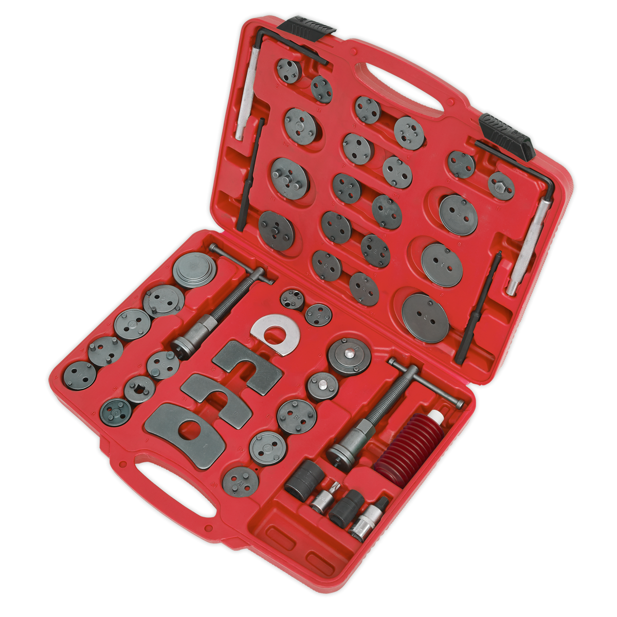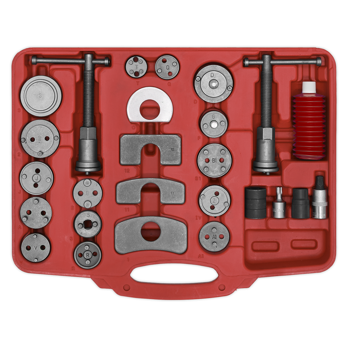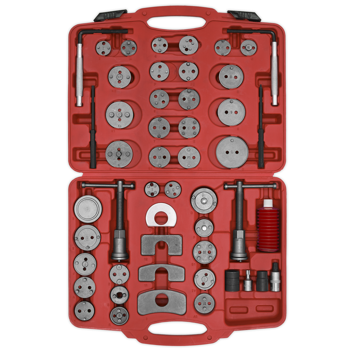 155.12 2026-01-30Comprehensive master set of adaptors to suit a wide range of vehicle applications. Suitable for push-back and wind-back brake pistons. Includes left and right-handed thrust bolt assemblies, caliper removal tools and grease container. Precision made adaptor plates with thrust bolt assembly and reaction plate. Supplied in storage case.