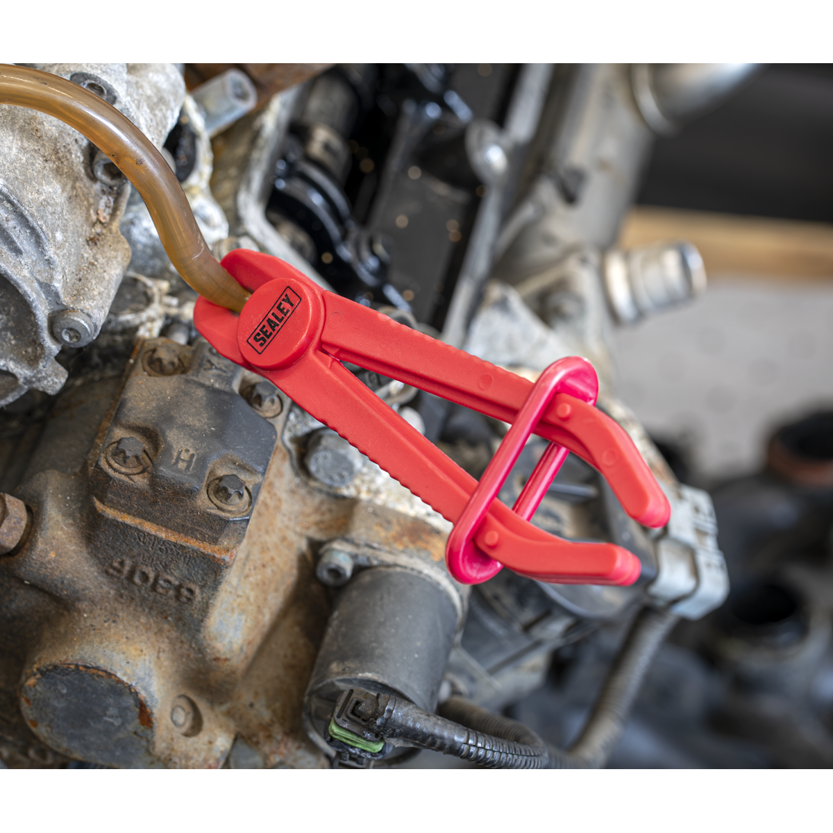 19.40 2025-12-23Manufactured from heat resistant nylon. Rounded jaw edges prevent damage to internal hose reinforcement. Features locking mechanism for simple one-handed use. Suitable for brake, coolant, fuel and vacuum hoses.