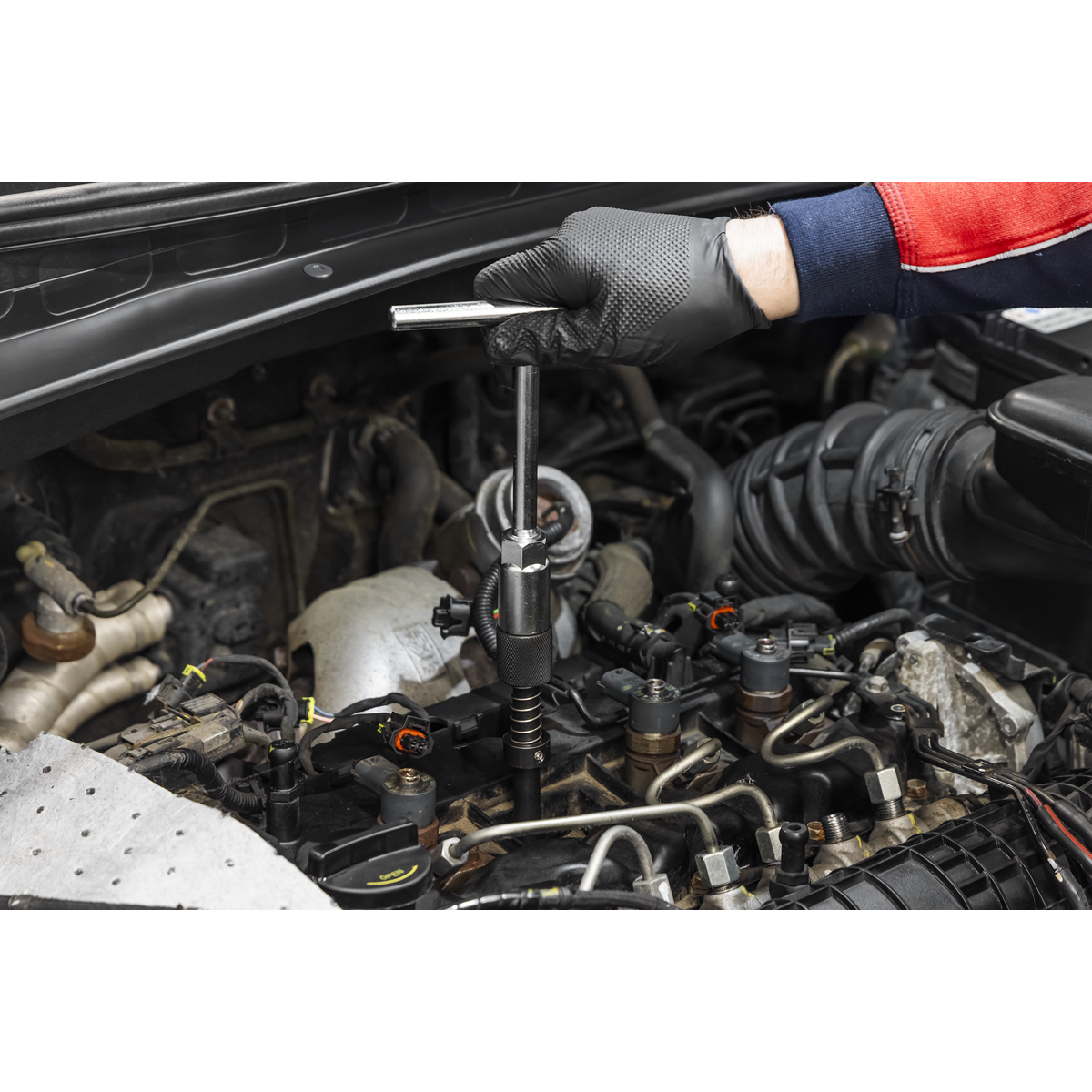118.76 2026-04-16Comprehensive 21pc kit that fits most injector apertures. Used to clean/decarbonise injector seats when changing injectors. It helps to avoid blow-back due to poorly seated injectors. Suitable for a wide range of vehicles. Contents: Reamers: Flat Reamers; 14 x 14, 15.5 x 15.5, 15 x 19, 17 x 17, 17 x 17.5, 17 x 19, 17 x 19.5, 17 x 20, 19 x 21.5mm, Angled Reamers; 15.5 x 15.5, 17 x 17, 17 x 21, 17.5 x 20.5mm, 350mm Injector Seal Puller, T-Handle, Centring Post, Cutter, Guide Pin, 2.5mm Hex Key, Cleaning Brushes (x2).