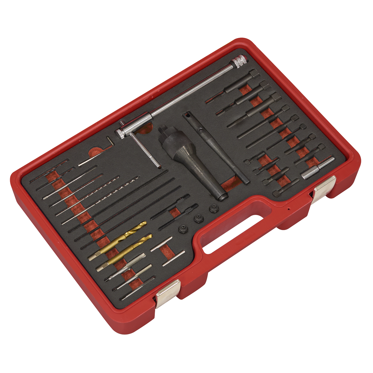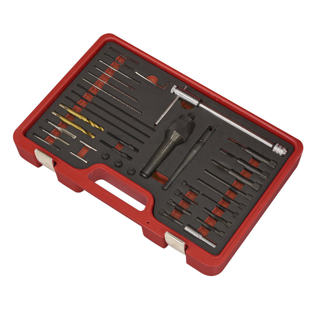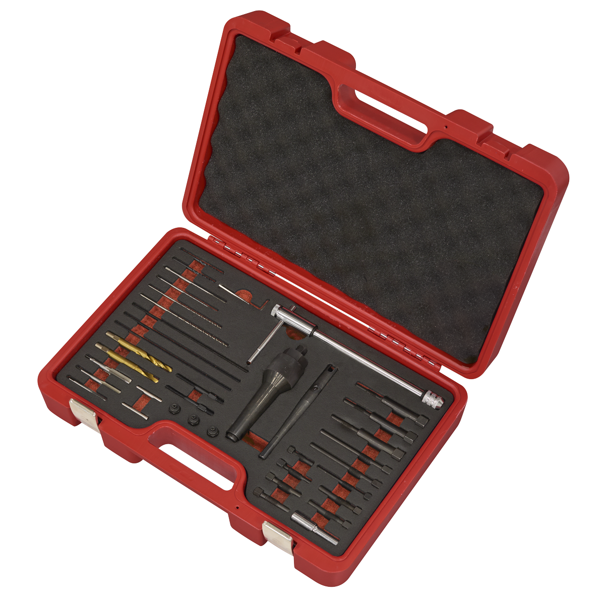 125.96 2026-03-26A comprehensive kit crafted for the removal of broken or damaged glow plugs and heater elements, which are frequently susceptible to breaking during the glow plug extraction process. Saves time by negating the necessity of removing the cylinder head. Functions by drilling and tapping a thread into the broken element, allowing the supplied glow plug adaptors to be used for extraction. The set includes all essential adaptors for drilling, centring, and safely extracting the glow plug and heater elements, featuring M8 x 1mm and M10 x 1mm threads. Supplied in a storage case.
