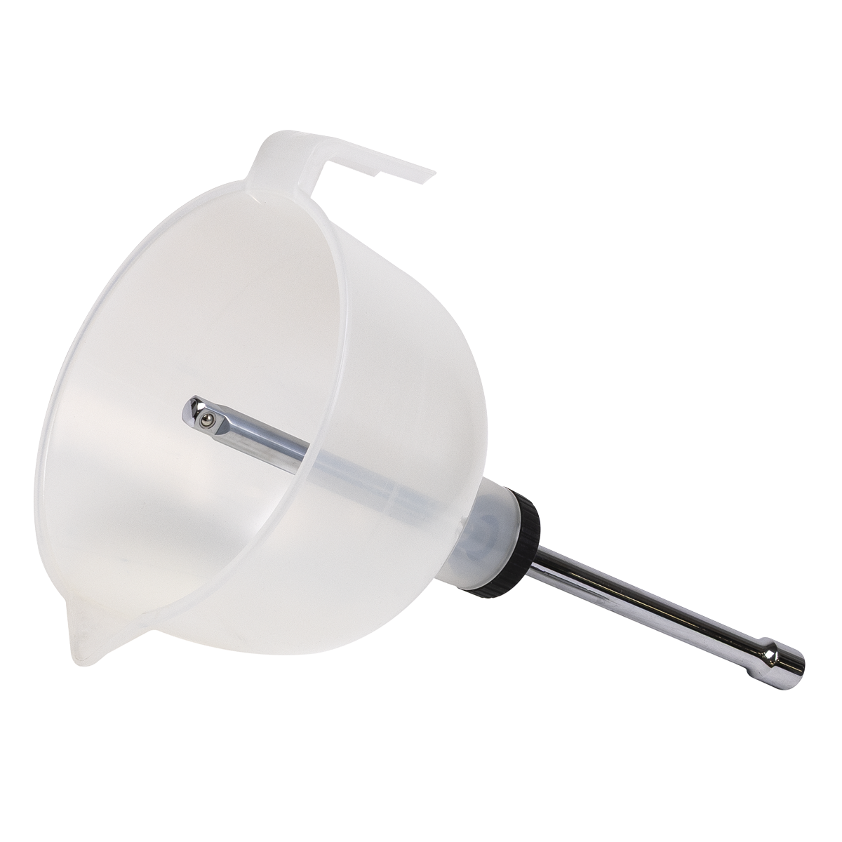 20.84 2025-11-13Designed to capture oil spillage when removing oil filters. The long reach extension bar and oil seal contain waste oil. The pouring spout makes waste oil disposal easy. Spill-proof oil filter removal. Protects the technician's hands from hot oil during the oil filter removal process. Oil funnel capacity: 1L. 300mm 3/8”Sq Drive extension bar that connects to any oil filter wrench (wrench not included). The set also includes a 3/8” to 1/2” Adaptor.