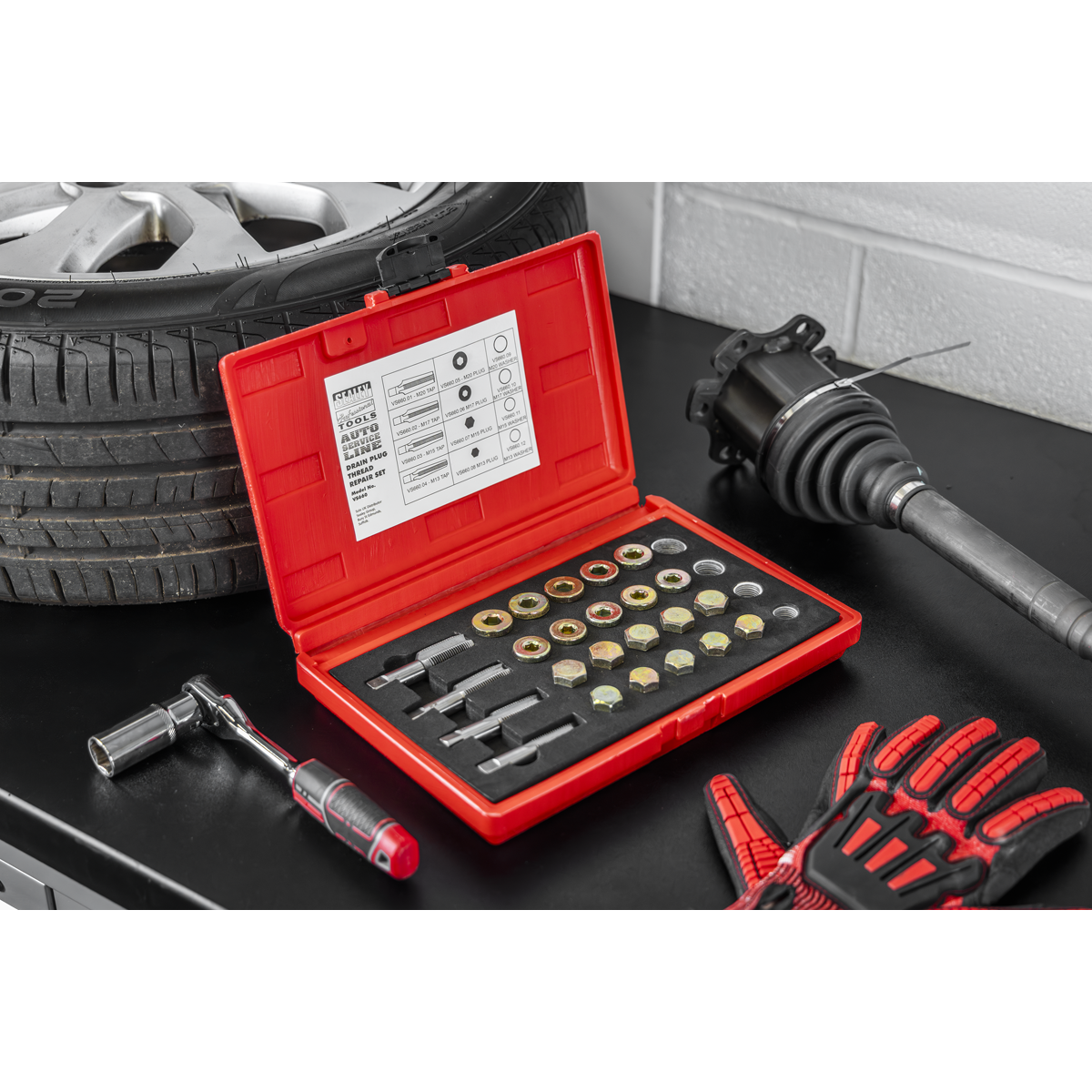 42.92 2025-12-22Superb for repairing sump, gearbox and differential drain plug threads. Used to tap the damaged thread slightly oversize, then fit a new drain plug and washer (supplied). Set is suitable for the most popular threads used on cars and light commercial vehicles. Supplied in storage case.