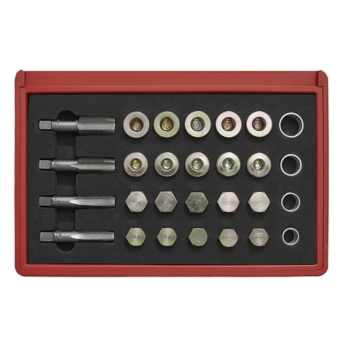 42.92 2026-02-06Superb for repairing sump, gearbox and differential drain plug threads. Used to tap the damaged thread slightly oversize, then fit a new drain plug and washer (supplied). Set is suitable for the most popular threads used on cars and light commercial vehicles. Supplied in storage case.