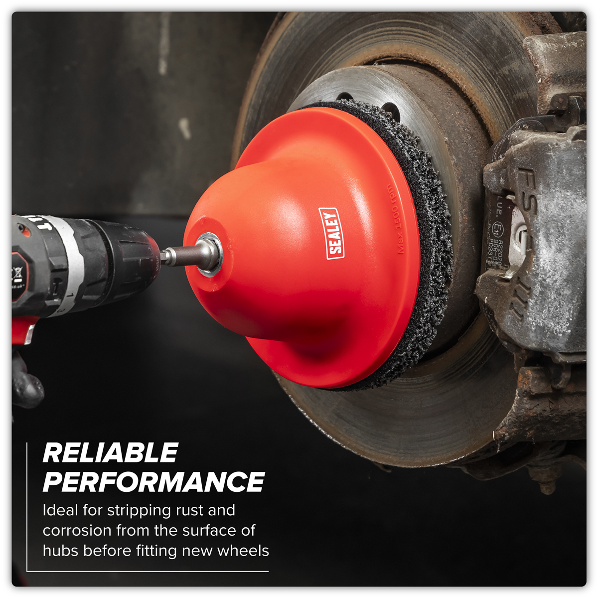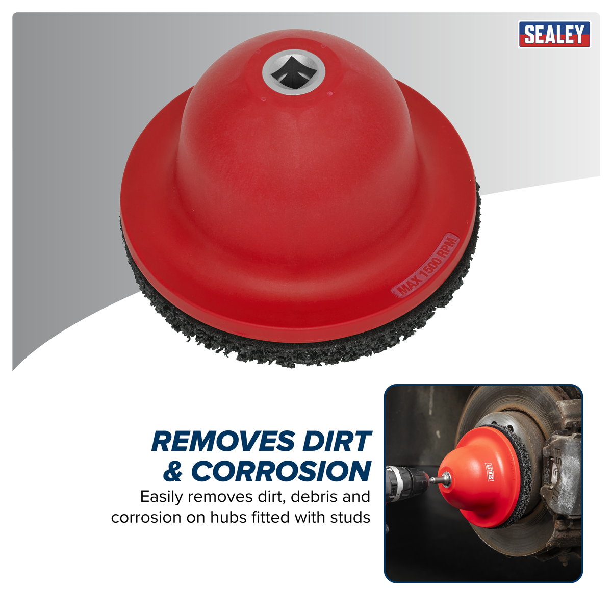 49.16 2026-05-19Removes surface dirt and corrosion on hubs that use wheel bolts. Ideal for preparing wheels, hubs and brake discs or drums for re-assembly. For use with 1/2"Sq drive adaptor. Supplied with one abrasive disc.