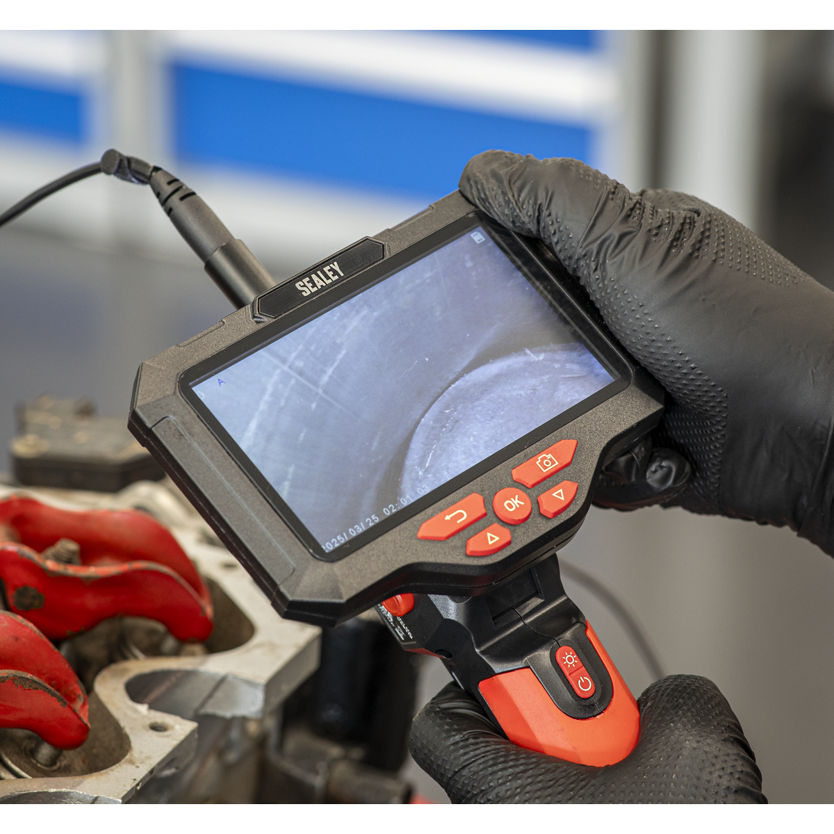 221.95 2025-12-19High performance pistol grip borescope with 5”/127mm true colour LCD display screen. Includes 2m long 5.5mm dual lens waterproof probe pod with IP67 rating. High brightness LED auxiliary lighting enables use in multiple environments. Features video record/playback, still images and stream live video via the AV out connection. Comfortable pistol grip handle and clear function buttons allows one handed operation. 4GB Micro SD card (supplied) stores up to 4.5hrs of video and 10,000 images, which can be transferred to a PC via the USB connection. Features 180° screen rotation function for increased flexibility in application. Powered by lithium-ion battery pack, providing up to 6hrs continuous use. AV and USB Type-C charging cable supplied. Supplied in storage case.