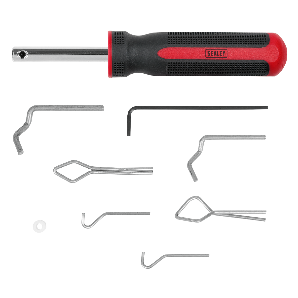 13.64 2026-05-17Designed for installing windscreens with plastic or rubber inserts on older vehicles. Supplied with two lipping tools for effective seal manipulation. Hex key included for reliable assembly and adjustment. Plastic handle with rubber grip ensures safe and controlled use. Includes 10.5mm and 17mm eyes for various application needs.