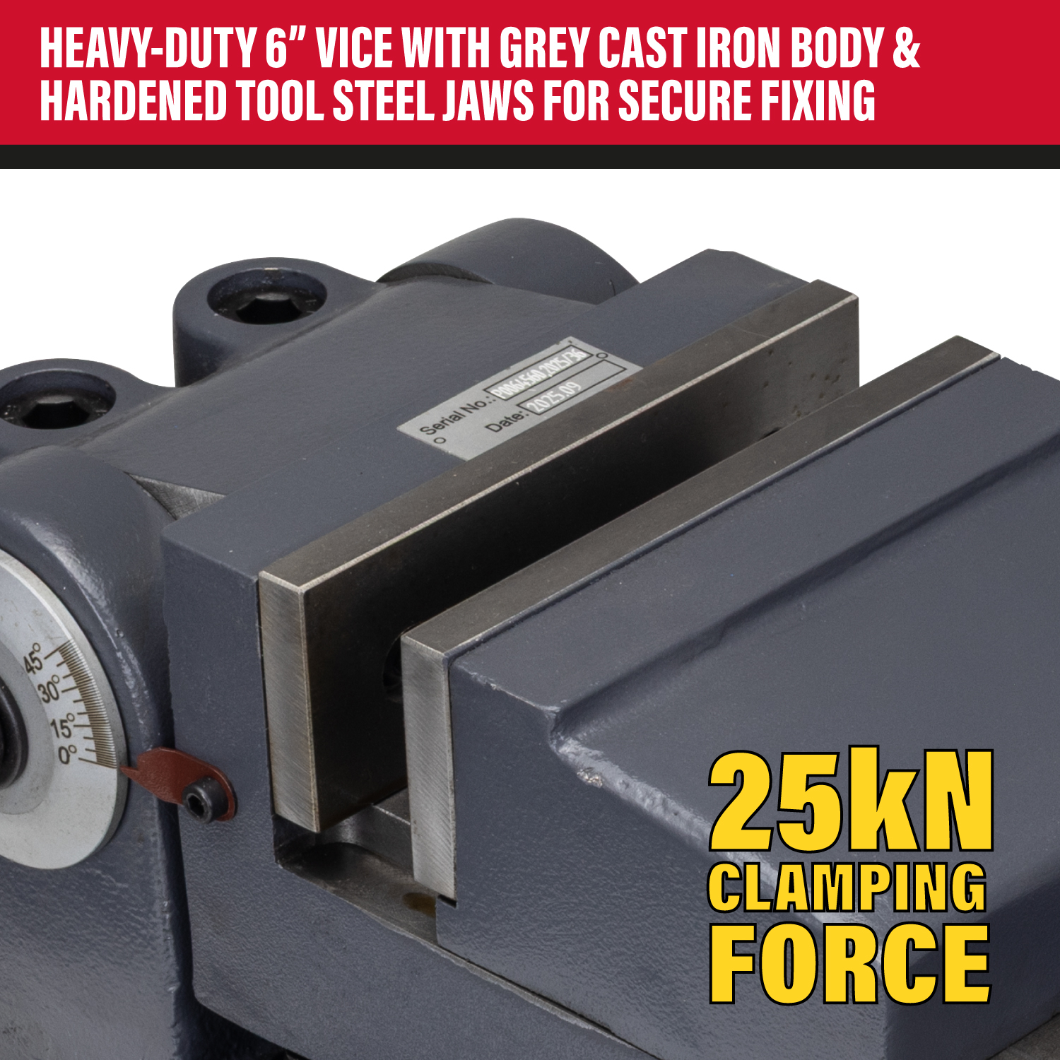461.99 2026-03-15The SIP 6" Swivel & Tilt Machine Vice enables horizontal rotation and vertical inclination for precise multi-angle machining. This helps reduce set-up time and eliminates need for additional fixtures while ensuring accuracy in complex drilling, plus improved tool access.