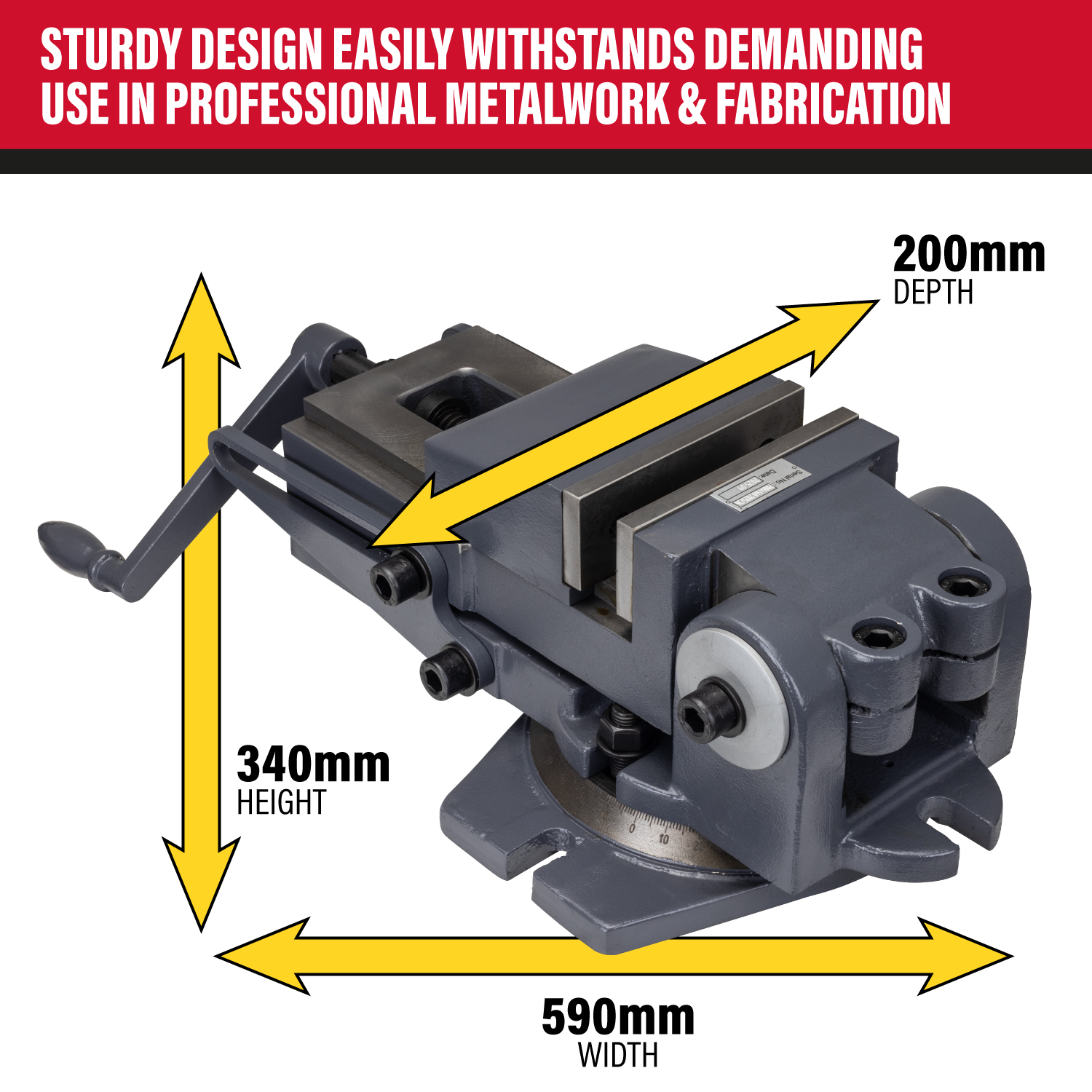 With a swivel base that allows the operator to rotate workpieces from 0° to 360° without unclamping, and a 0° to 45° tilting mechanism for additional flexibility when machining at an angle, this vice offers maximum versatility in professional metalworking and fabrication.