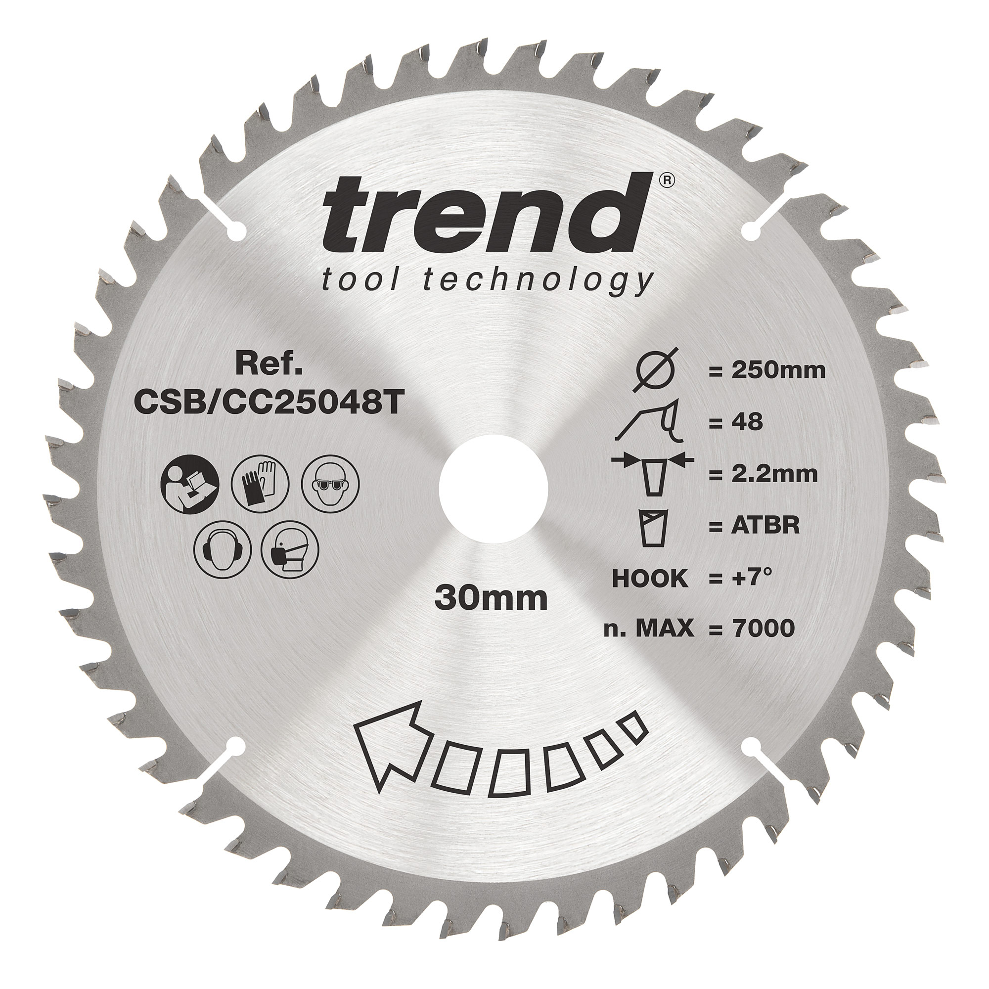 Alternate top bevel raker (ATBR) tooth form with +7� hook optimises cutting speed and performance for both ripping and cross-cutting applications.