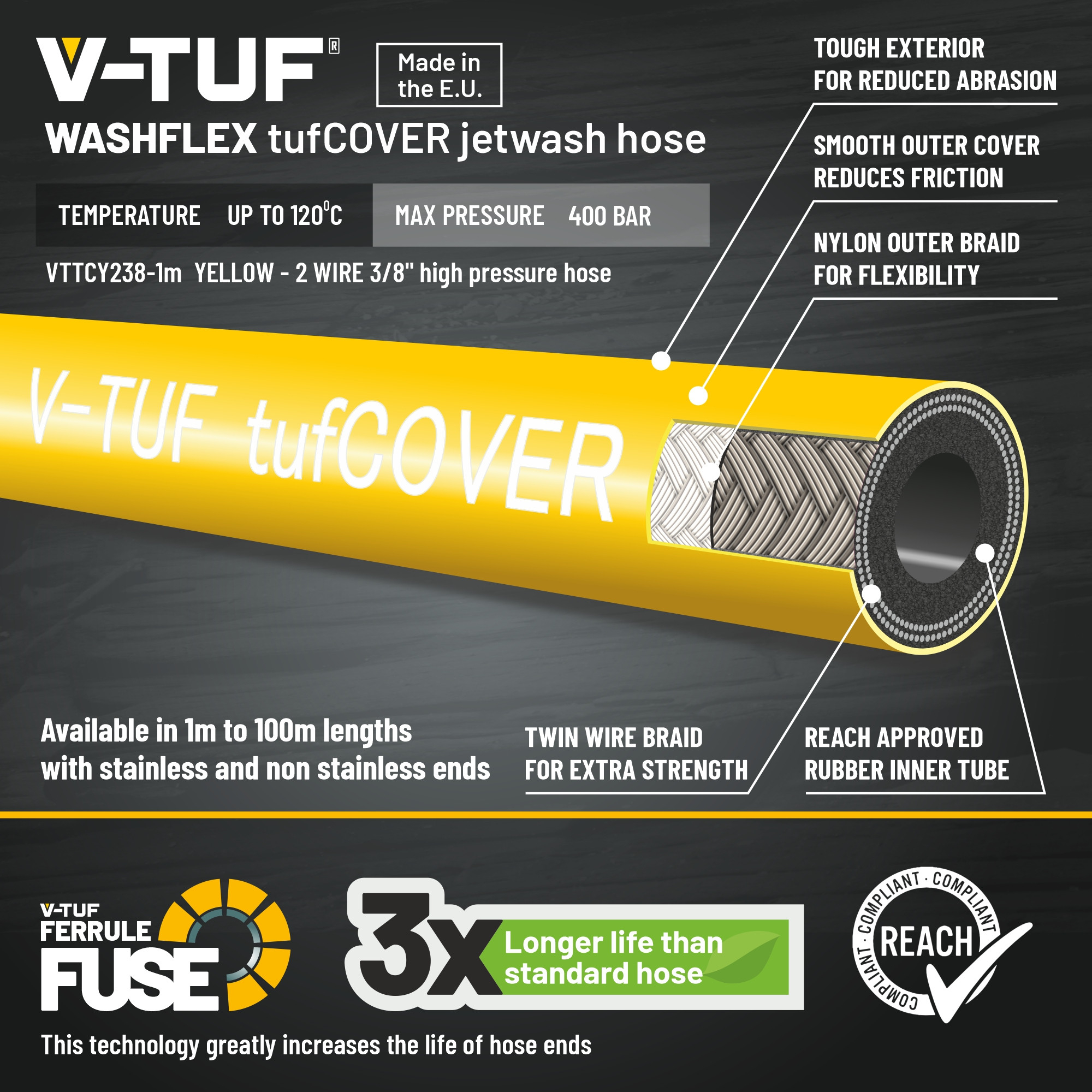 What Makes V-TUF WASHFLEX HPH So Special? V-TUF Have Over 15 Years Experience In Hose Manufacturing, Using The Finest Raw Material Manufacturers In Europe.
