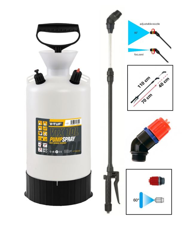 Ideal for use with the VTX-10L which can be used for weed killer, D-GREEN, car cleaning chemical, de-greaser for cleaning oil spills and fuel spills. Spraying on stanitiser VTC720 & VTC420.