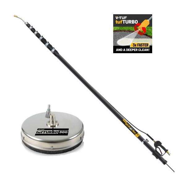 1169.99 2026-03-21V-TUF HIGH PRESSURE EXTENDABLE TELESCOPIC LANCE the safe option when cleaning at height! Comes with Quick Release end tube SSQ F Quick release jet connection SSQ type Comes with support belt 280 Bar max pressure 30 Lpm max flow 100C max temperature Hybrid Carbon Fibre construction High pressure gun 3/8F inlet M22 & MSQ MALE adaptors supplied. Please note: You will need to purchase the correct adaptor to fit your high pressure hose. Note: Due to product development, specifications can change without notice and images are for illustration only. E&OE Ideal for cleaning conservatories, orangeries, cladding, gutters, roofs, solar panels, stone and brickwork. Large vehicles such as lorries, trucks, coaches, busses, trains, trams, large plant, machinery, boats, yachts, ships, and aeroplanes. Just make sure you have the right attachments for the task at hand such as V-TUF surface cleaners, soft wash kits, turbo nozzles, chemicals and detergents. For mossy roofs use with V-TUF D-GREEN.