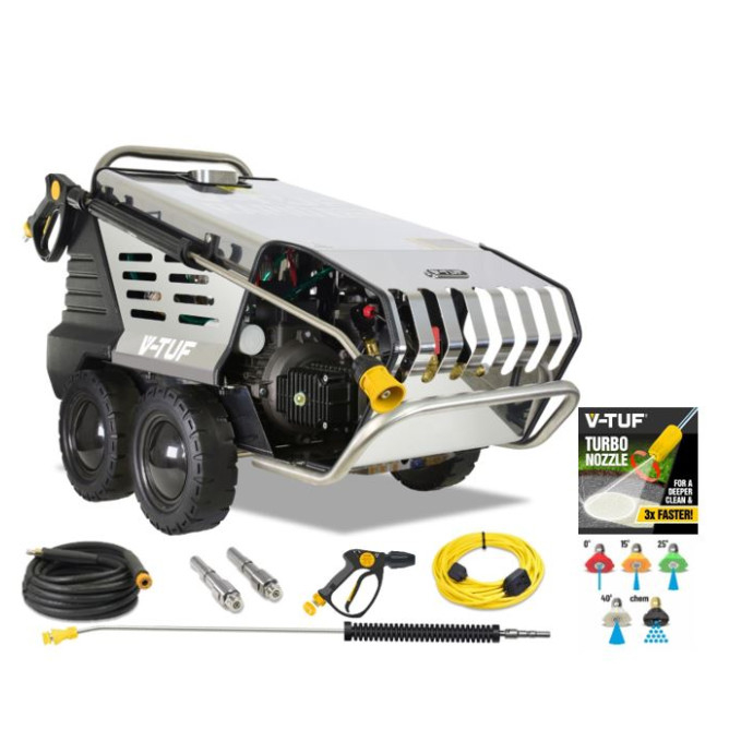 3482.99 2026-03-21V-TUF RAPID-VSC 240v Hot-Water Compact Heavy-Duty Pressure Washer is popular for day-to-day monotonous cleaning tasks tackling large amounts of grease, oil, dirt, or stubborn dirt. The RAPID-VSC steam cleaner swiftly lifts all deep-rooted thick sludge, dirt, and grime from all hard surfaces. The No.1 Star Buy!