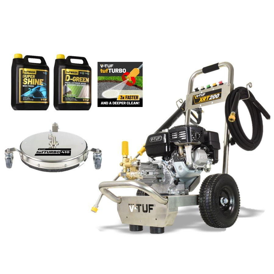 V-TUF TORRENT XRT200 power washers offer 190 bar Working pressure, 12l/Min, with a 6.5HP petrol Honda engine , trolley mounted on a heavy-duty manoeuvrable frame. Its all muscle, all power, all results! One of the most Compact, and reliable yard cleaners on the market.
