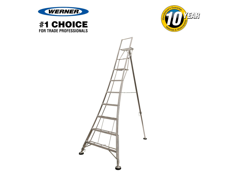 413.99 2026-01-11Made for landscapers, agricultural and horticultural professionals who need reliable stability on uneven or soft ground, the Werner Adjustable Tripod Ladder 7 Tread is constructed from tough yet lightweight aluminium. It’s easy to carry and position without compromising on strength.